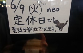 毎週火曜日と、毎月第1水曜日、毎月第3水曜日が、neoの定休日でございます😉