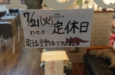 😁今日7月21日(火)はneo 定休日です😁…