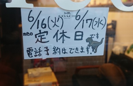 😃今日6月17日(水)はneo定休日😃